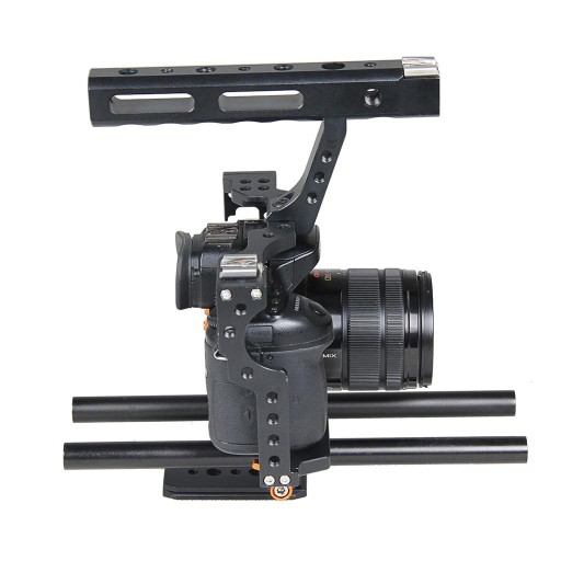 Video camera cage stabilizer for Sony A7/A7R/A7S/A7SII/A7RII camera.
