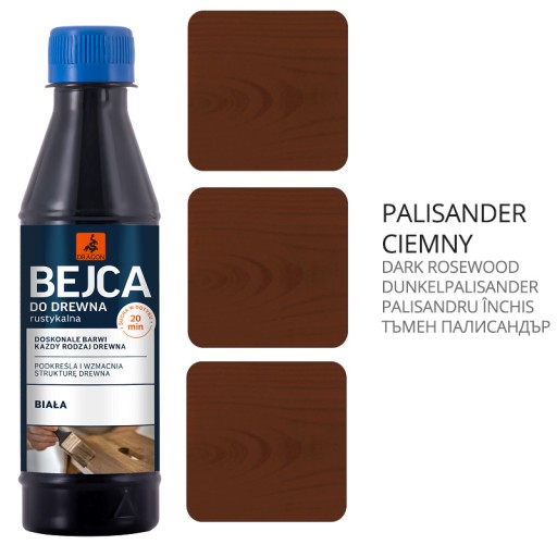 4. Zawartość opakowania dokładnie wymieszać. Dla uzyskania ciemniejszego koloru nakłada się kolejną warstwę po ok. 0,5 h. Powierzchnie wybarwione po wysuszeniu można pokryć lakierem rozpuszczalnikowym, nitrocelulozowym, akrylowym, poliuretanowym lub wodorozcieńczalnym.
