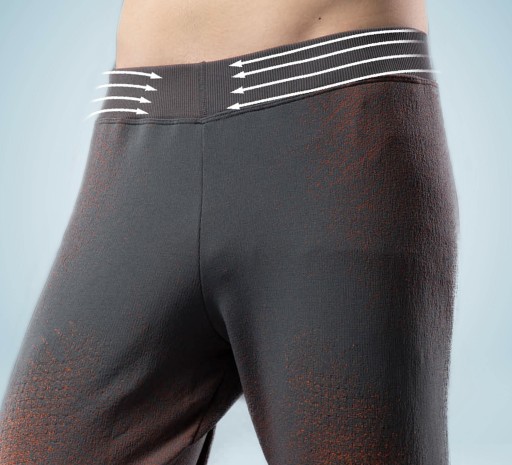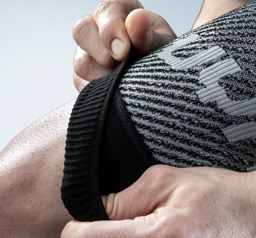 Wewnętrzna powierzchnia mankietu jest skonstruowana z trójwymiarowymi wypukłościami, aby zwiększyć przyczepność bez silikonowych wstawek i jednocześnie umożliwić cyrkulację powietrza między skórą a tkaniną.