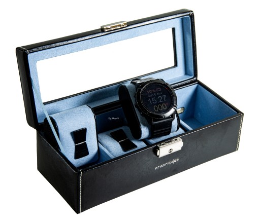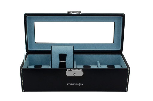 Starannie skomponowane wnętrze, pomimo niewielkich gabarytów, pomieści 4 zegarki, również rozmiaru XXL. Bardzo ściśliwie dopasowane poduszki zapewniają bardzo bezpieczne przechowywanie, a szklana pokrywa zapewnia ozdobny wygląd i podgląd kolekcji.