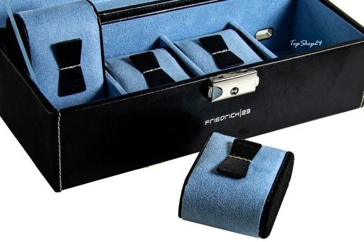 - duże poduszki na zegarki z uchwytami ze skóry do ich łatwego wyciągania.