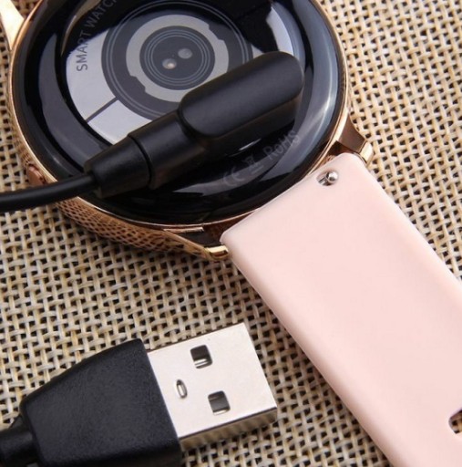 Najprostszym, a zarazem najlepszym sposobem ładowania zegarka jest magnetyczny przewód USB. Dopasowuje się on łatwo i intuicyjnie do spodu zegarka.