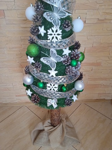 CHOINKA- STOŻEK SZTUCZNY Z DEKORACJĄ I LAMPKAMI LED