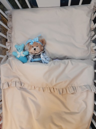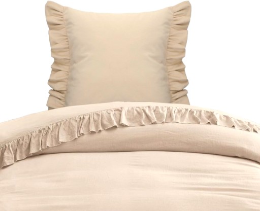 - Falbanki są naszyte na dwóch bokach poduszki i na jednym kołdry
