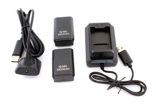 - Ładowarka mikroprocesorowa przeznaczona do dołączonych w zestawie akumulatorów - pasujących do padów od Microsoft XBOX 360.