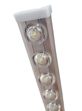 Lampa gotowa do montażu, wystarczy zamontować i doprowadzić prąd do lampy. Nie potrzeba żadnych dodatkowych zasilaczy. Lampę można również montować do elewacji za pomocą blaszek, które są w zestawie, nie trzeba jej podwieszać na linkach. Każdą diodę w lampie zasłania gruba przezroczysta soczewka ochronna rozpraszająca światło. Dodatkowo zastosowano przetwornice do każdej z taśm LED, znajdujących się w środku, co zdecydowanie wydłuża żywotność naszych paneli LED. Wspomniane wyżej aluminium zastosowane w tej lampie, jest grube, daje to gwarancję dobrze odprowadzanego ciepła z diod LED, na dodatek lampa jest sztywna i zdecydowanie łatwiejsza w montażu, nie wygina się jak banan oraz ciężej jest ją uszkodzić czy powyginać, w ręku jest na prawdę solidna, a moc na prawdę jest bardzo duża.