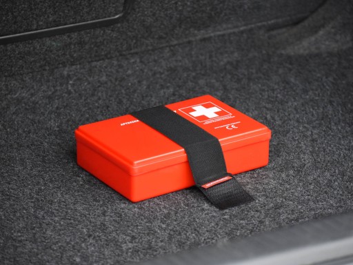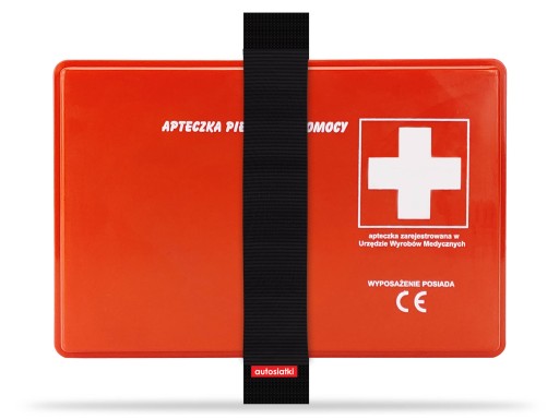 Apteczka samochodowa z podstawowym wyposażeniem. Wykonana z tworzywa sztucznego w jaskrawym kolorze. Posiada kompaktowe wymiary, oraz miejsce do uzupełnienia jej o potrzebne środki opatrunkowe i leki, wedle indywidualnego zapotrzebowania. Mocowana do tapicerki samochodu za pomocą praktycznego uchwytu z taśmy typu rzep. Przed zakupem prosimy upewnić się czy rzep trzyma się tapicerki w Państwa bagażniku. Jeśli rzep z np. kurtki czy torby przyczepia się do wykładziny - uchwyt zachowa się tak samo.