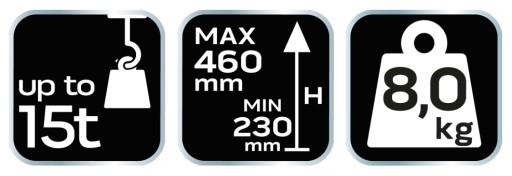 Wysokiej jakości podnośnik typu słupkowego od marki NEO, przystosowany do podnoszenia ciężarów o masie nawet do 15 ton. Umożliwia podniesienie obiektu od 230 do 460 mm wysokości. Wykonany został z wytrzymałej stali. Jego niewielka konstrukcja oraz mała masa (zaledwie 8 kg) umożliwiają wygodne przenoszenie narzędzia z miejsca na miejsce. Podnośnik charakteryzuje się łatwością w obsłudze. Będzie niezbędny podczas pracy z gabarytowymi przedmiotami lub urządzeniami. Marka NEO zapewnia solidność na wiele sezonów.