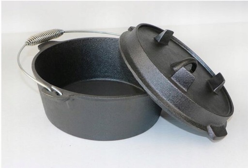 Żeliwo to materiał bardzo wytrzymały, odporny na wysoką temperaturę, zarysowania i uszkodzenia mechaniczne. Dodatkowo doskonale przewodzi ciepło i długo je utrzymuje co sprawia, że potrawy dłużej będą ciepłe. Sprawdzi się przy daniach które potrzebują długiej obróbki cieplnej.
