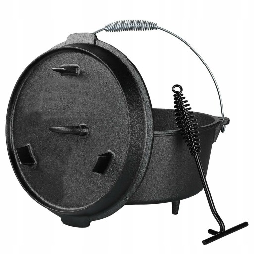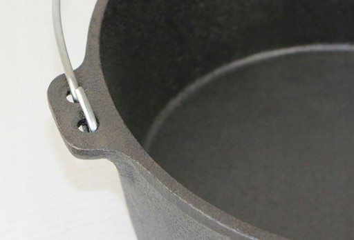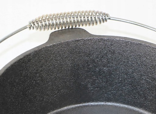 Kociołek posiada specjalna rączkę ułatwiającą jego przenoszenie lub powieszenie np. na gałęzi. Zwój drutu działa na zasadzie radiatora co sprawia, ze tak bardzo się nie nagrzewa.