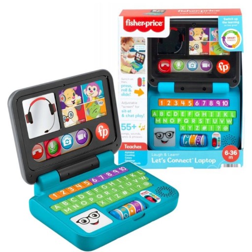 Każdy maluch jest teraz gotowy do zdalnej zabawy i nauki z domu (oraz każdego innego miejsca) dzięki tej elektronicznej zabawce Edukacyjny Laptop Malucha „Porozmawiajmy” „Ucz się i śmiej!” od Fisher-Price. Dziecko może prowadzić „wideokonferencje” ze Szczeniaczkiem i przesuwać przełącznik, aby „włączyć głos”. A do tego będzie z zapałem pracować nad poznaniem wszystkich wyjątkowych funkcji, takich jak przyciski na klawiaturze oraz muzyczny kręciołek, które włączają kolorowe światełka i ponad 55 aktywacji: piosenki, dźwięki i wypowiedzi o literkach, kolorach, liczeniu i nie tylko. 3 poziomy nauki umożliwiają wybór trybu w zależności od wieku dziecka