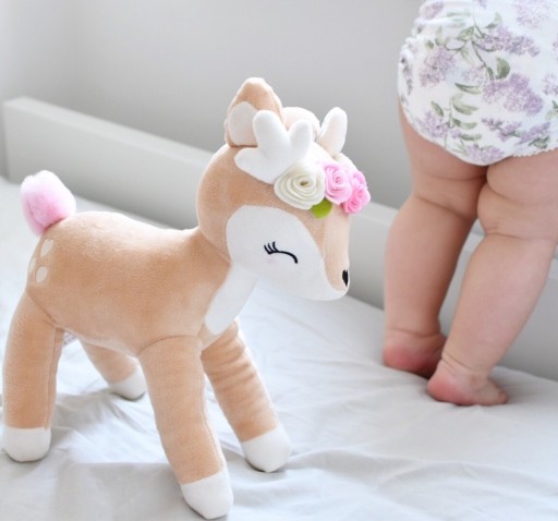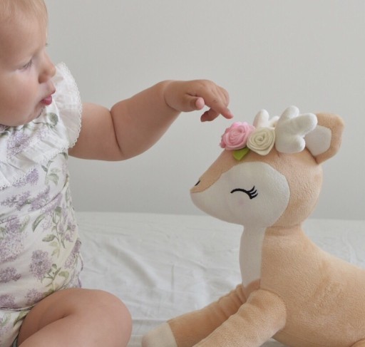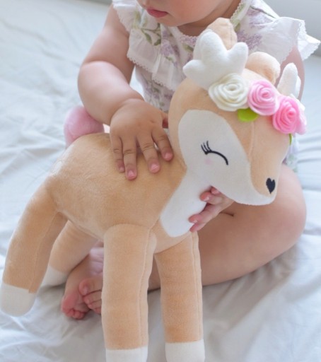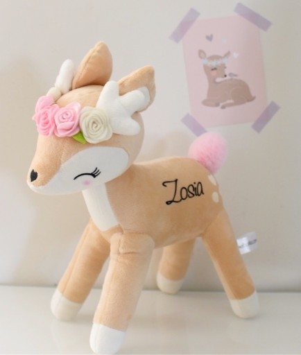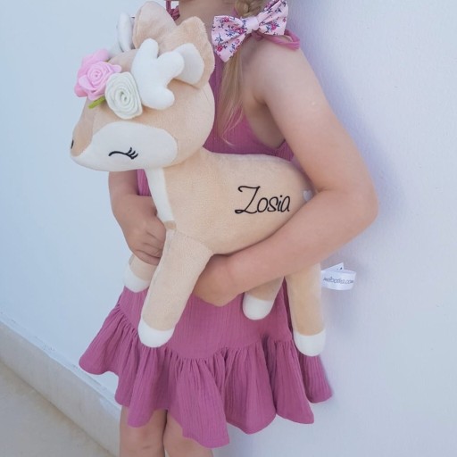 Przesłodka, pluszowa sarenka z pastelowymi kwiatuszkami na główce i z milutkim ogonkiem to idealna przytulanka dla małej dziewczynki w każdym wieku.