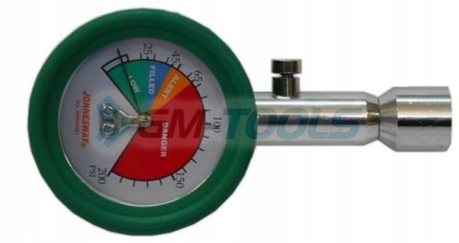 Zakres: 0 - 200PSI, kolorowa skala ułatwiająca odczyt.