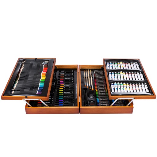 Mega zestaw do malowania i rysowania to wspaniała przygoda dla początkujących artystów lub bardziej doświadczonych plastyków. Komplet jest funkcjonalny i składa się łącznie z 174 przydatnych części oraz praktycznej walizki.