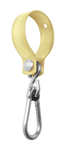 Mocowanie huśtawki z karabińczykiem i obejmą okrągłą umożliwia szybki i łatwy montaż do belek o przekroju okrągłym. Obejmę pokryto powłoką galwaniczną, dzięki czemu mocowanie jest doskonale zabezpieczone przed korozją.