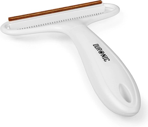 Miedziana strona ostrza doskonale usuwa futro i kłaczki z dywanów i grubych tkanin, takich jak wełniane płaszcze.