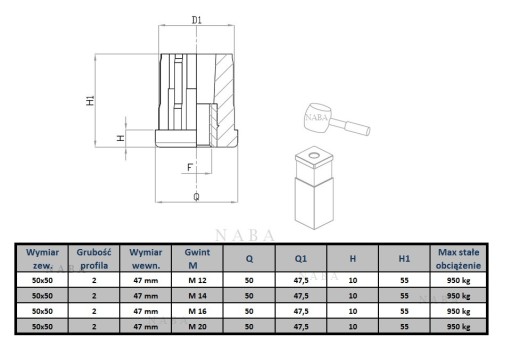 ZAŚLEPKA PROFILA 50X50 JAKOŚĆ !!! Z GWINTEM M16