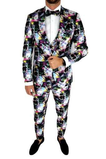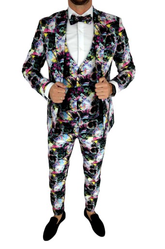 - Komplet zawiera: marynarkę, kamizelkę, spodnie oraz muchę