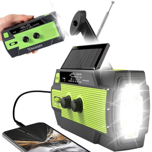 - ✅4 metody ładowania - poprzez energię słoneczną, korbę rozruchową, z baterii oraz kabel USB