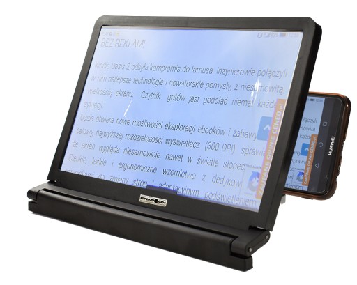 Sam ekran lupy oparty jest na dwóch zawiasach co zapewnia szeroki zakres manewrowania gadżetem i umożliwia proste dostosowanie kątu nachylenia do indywidualnych potrzeb użytkownika.