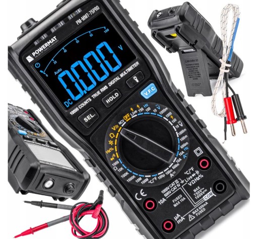 Gumowana obudowa multimetru i sond poprawia bezpieczeństwo pomiarów dużych natężeń prądu.