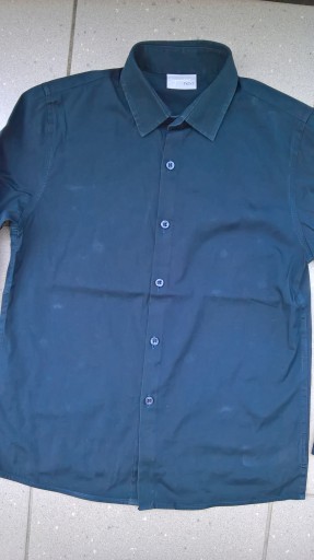 koszula firmy Next, rozmiar 134cm, 9lat, taka ciemno granatowa wpadająca w czarny, stan db, te jaśniejsze przejścia to od prasowania ślady, delikatnie się uciąga, posiada elastan