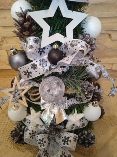 Wybieracie Państwo ogólną kolorystykę choinek która może się różnić od pokazanych zdjęć (proszę pamiętać iż jest to praca ręczna- artystyczna, a nie maszynowa! Nie otrzymacie Państwo choinki identycznej jak na zdjęciu lecz bardzo podobną!). Ogólnie zachowujemy kolorystkę choinki np. srebrno- czerwona.