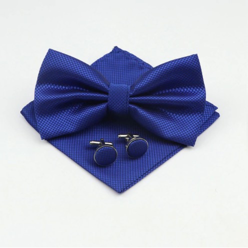 МУЖСКОЙ ГАЛСТУК-БАБОЧКА Запонки, синий нагрудный платок