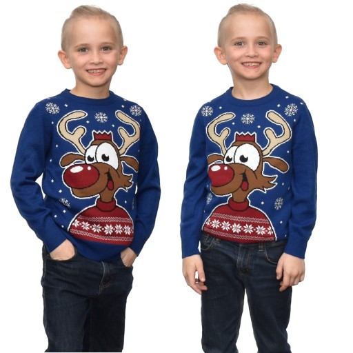 DZIECIĘCY SWETER ŚWIATECZNY Z LEDAMI I RENIFEREM -NIEBIESKI
