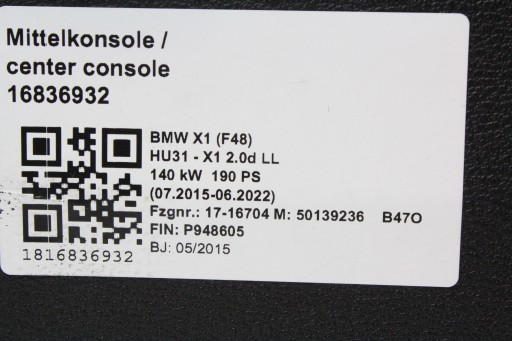 TUNEL ŚRODKOWY PODŁOKIETNIK BMW F39 X2 F48 X1 HMAT