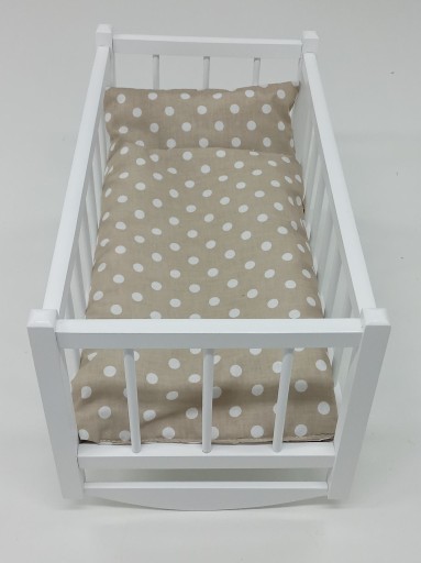 Kołyska wykonana z drewna bukowego,co zdecydowanie zwiększa trwałość i zapewnia wygląd zbliżony do ich dużego odpowiednika.