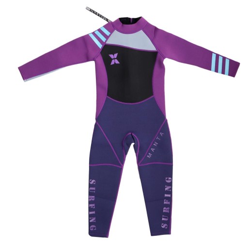 Neoprenowy Kombinezon Z Długim Rękawem Dla Całego Dziecka, Czarny + Fioletowy XL