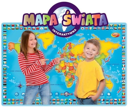 Mapa 2-języczna (pol/ang), opracowana z najwyższym zaangażowaniem i poświęceniem, tak aby dziecko mogło z niej korzystać przez długie lata. Z Interaktywną Mapą dzieci przeżyją niesamowitą podróż dookoła świata. Dzięki niej najmłodsi mają dostęp do szerokiej wiedzy z zakresu 78 państw. Poznają stolice, flagi, języki, którymi posługują się mieszkańcy oraz różne zabawne fakty. Opcja zmiany języka pomoże w nauce języka angielskiego.