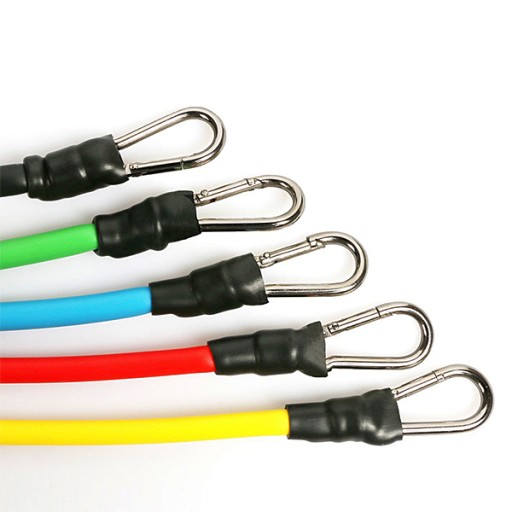Każda z pięciu gum oporowych, zawartych w zestawie, generuje inne obciążenie - w zakresie od 4,5 do 13,6 kg.