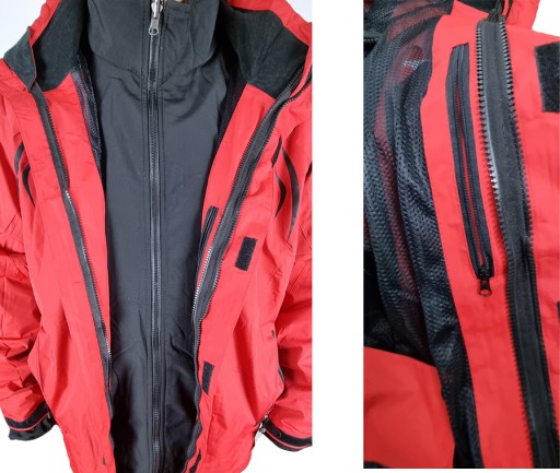 - Posiada odpinany na suwak softshell (bez niego staje się zaawansowaną technologicznie kurtką przeciwdeszczową)