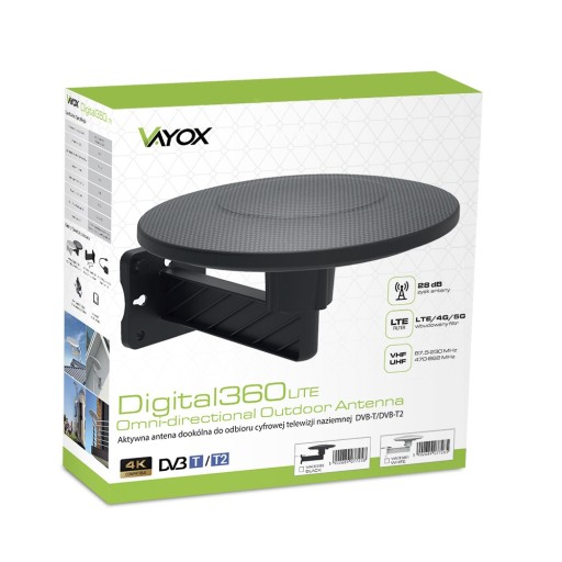 ANTENA DOOKÓLNA DO TV NAZIEMNEJ ZEWNĘTRZNA DVBT 2 LTE 4K VHF UHF DVBT2 MUX8 VAYOX