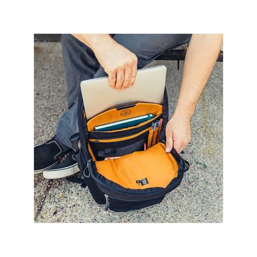 Wykonany został z bardzo lekkich a zarazem wytrzymałych materiałów pochodzących z recyclingu 100% Recycled 300D Polyester Ripstop with PFC-Free DWR. Od frontu znajduje się duża kieszeń z dostępem za pośrednictwem suwaka. W jej wnętrzu znajdują się 2 przegródki z siatki oraz kieszeń z siatki zasuwana na suwak. Na szczycie znajduje się również mniejsza kieszonka zapinana na suwak. Przy spodzie plecaka wszyte są dwie pętle do troczenia dodatkowego ekwipunku z odblaskowymi akcentami. Po bokach z jednej strony znajduje się elastyczna kieszeń z siatki w sam raz do transportu butelki z wodą a po drugiej stronie mała kieszeń zapinana na suwak z ukrytym uchwytem na klucze. W komorze głównej znajduje się niewielka siateczkowa kieszonka zapinana na suwak oraz uchwyty na przybory do pisania np. długopisy, ołówki. W komorze głównej znajdują się również przegrody dedykowane do transportu laptopa do 15" oraz tabletu. Szelki wykonano z pianki i pokryto oddychającym materiałem. Na szelkach dodatkowo znajdują się paski do troczenia dodatkowego sprzętu. Plecak posiada płynnie regulowany pas piersiowy oraz niewielką kieszonkę zapinaną na suwak na jednej z szelek. Dodatkowo model ten wyposażony jest w wygodny uchwyt do przenoszenia.