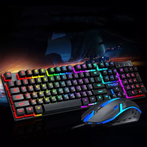 ✅ KLAWIATURA PRZEWODOWA PODŚWIETLANA T-WOLF TF200 Z MYSZKĄ GAMINGOWĄ ✅