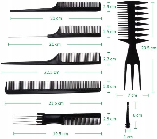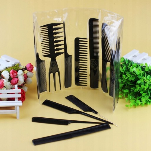 ➡️10 różnych grzebieni zamkniętych w wygodnym etui. Niezbędnik profesjonalnych salonów fryzjerskich i barberskich.