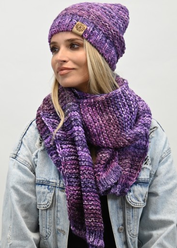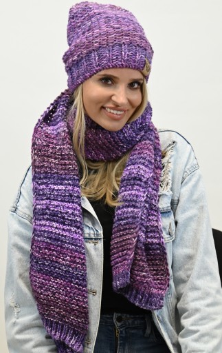 Komplet na tle innych wyróżnia - melanżowy wzór, obszerny SZALIKI, Czapka beani, która pasuje do każdej twarzy. Ciekawa kolorystyka dopasuje się do każdego koloru kurtki, płaszcza.