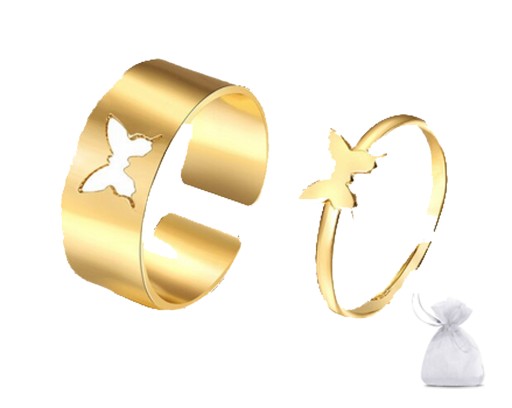 PIĘKNE PIERŚCIONKI W KOMPLECIE 2 SZT Z MOTYLEM