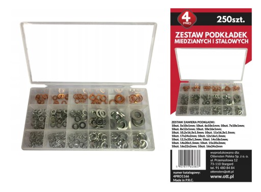 МЕДНЫЕ ШАЙБЫ МАСТЕРСКАЯ НОРМАЛИЯ НАБОР СТАЛЬНЫХ ШАЙБ 250 ШТ.