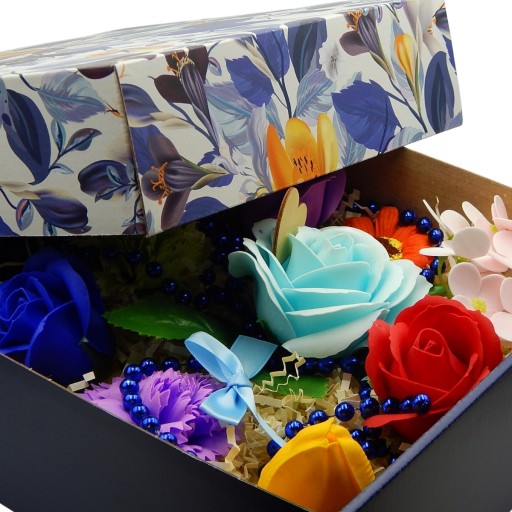 Kompozycja wyselekcjonowanych kwiatów mydlanych wysokiej jakości od najlepszych dostawców, które można zaaranżować w dowolny sposób w przygotowanym pudełku z wypełniaczem. Kwiaty bardzo realistyczne i trwałe wykonane z najlepszego rodzaju mydła juz kilka płatków dodanych do wody pozwoli cieszyć się subtelnym zapachem relaksacyjnej kąpieli, zapakowane w oddzielne torebki co gwarantuje zachowanie najwyższej jakości.