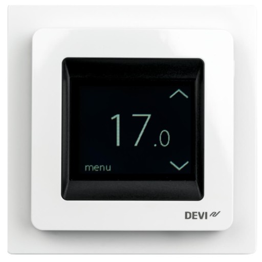DEVIreg Touch to najczęściej kupowany elektroniczny programowalny termostat. Służy do regulacji elektrycznego ogrzewania podłogowego. Termostat przeznaczony jest wyłącznie do montażu stacjonarnego i może pracować w systemach ogrzewania bezpośredniego całego pomieszczenia lub komfortowego ogrzewania podłogowego.