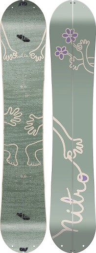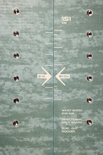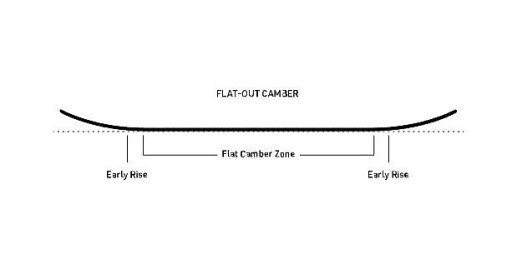 profil - Flat-Out Rocker: łączy flat kształt na środku deski z uniesieniem palców i pięty nieco wcześniej niż zwykle. Rezultatem jest łatwe skręcanie bez zacięcia czubkiem i piętą. Podniesiony czubek i pięta zapewniają lepszą nawigację w puchu, ułatwiają press i wybaczają błędy jeździeckie w każdym terenie. Ten camber zapewnia bardzo zabawną, a jednocześnie stabilną jazdę i jest wybierany przez riderów freestyle do parku i ulicy.