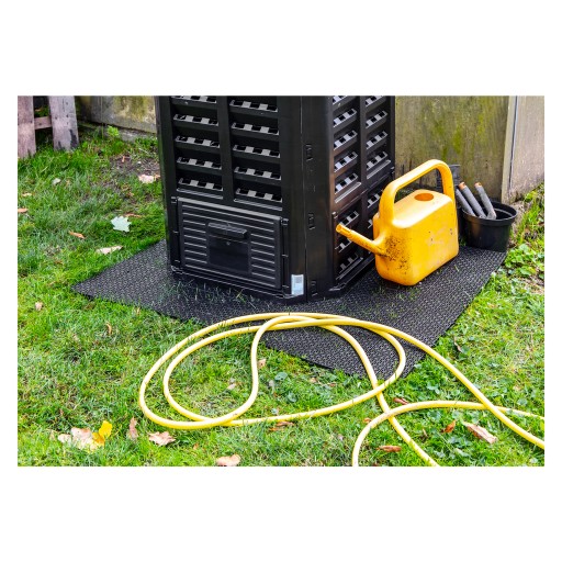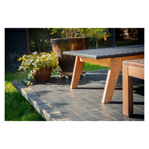 Płytki podłogowe są wykonane ze stabilizowanego UV polipropylenu z odzysku.