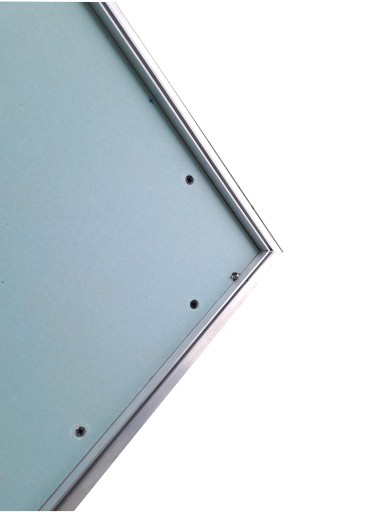 Drzwi rewizyjne CERAMIKO wykonane są z profili aluminiowych, które są spawane do ramy zewnętrznej i wewnętrznej. Cały zespół jest połączony za pomocą stałego zawiasu, co umożliwia otwarcie skrzydła drzwiowego w razie potrzeby. W wersji standardowej model ten produkowany jest z wodoodporną płytą w kolorze zielonym, mocowaną do ramy wewnętrznej za pomocą kleju o dużej wytrzymałości, co gwarantuje szybką i łatwą obróbkę powierzchni.