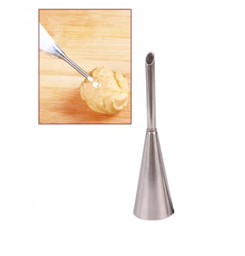 Tylka cukiernicza w kształcie igły ze ściętą końcówką. Idealna do nadziewania pączków, babeczek, ptysi lub ciastek. Sprawdzi się również do dekorowania ciast i tortów.