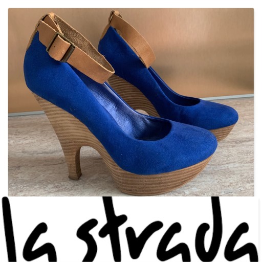 LA STRADA синие туфли на высоком каблуке на платформе 38