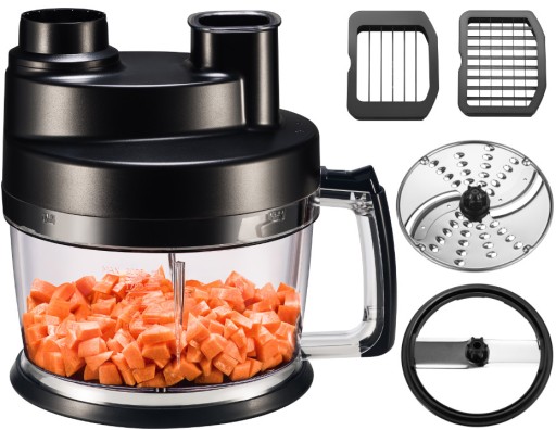Zestaw wielofunkcyjny malakser to dodatek do Blendera ręcznego wielofunkcyjnego Transa Electronics®, który jest przeznaczony do krojenia produktów spożywczych w kostkę, w słupki, szatkowania (wiórki), krojenia w plastry.